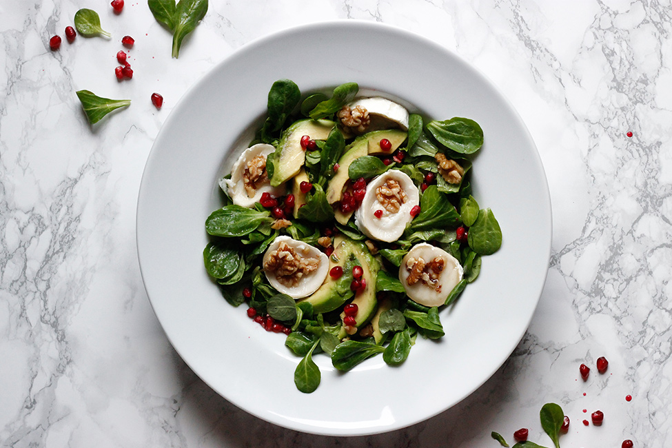 Ziegenkäse schmeckt in so gut wie jedem Salat köstlich. Er hat weniger Kalorien als Käse aus Kuhmilch und versorgt dich mit Vitaminen und Mineralstoffen wie Vitamin A, B, Kalzium und Eisen.