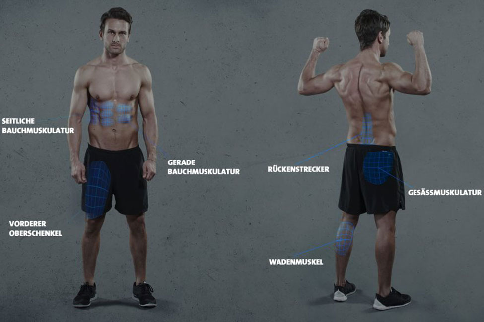 Beim Ausführen eines Squats sorgen besonders die seitliche und gerade Bauchmuskulatur sowie der Rückenstrecker für eine aufrechte Haltung deines Oberkörpers. Hier siehst du, welche Muskeln bei einem Squat beansprucht werden: