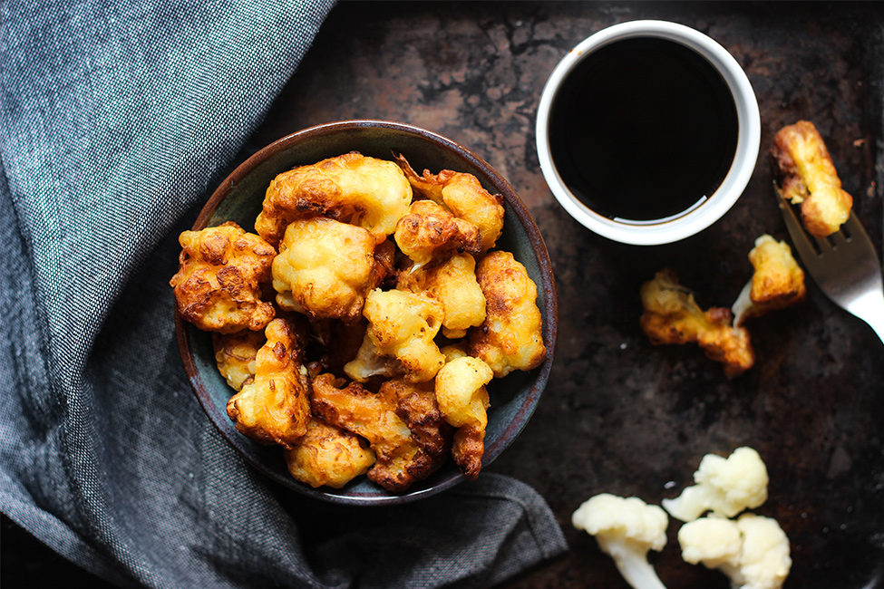 Hemos quitado los “culpables” y dejado los “saludables”. La masa de la tempura cubre la coliflor lo suficiente para hacerla crujiente, mientras que la dejamos rica y tierna por dentro. Además, el aceite de coco da un buen sabor a coco. Es una absoluta delicia que se puede servir junto a una salsa o dos. No hace falta complicarse la vida, sin embargo, una sencilla salsa de guindilla dulce o salsa de soja, marcará la diferencia.