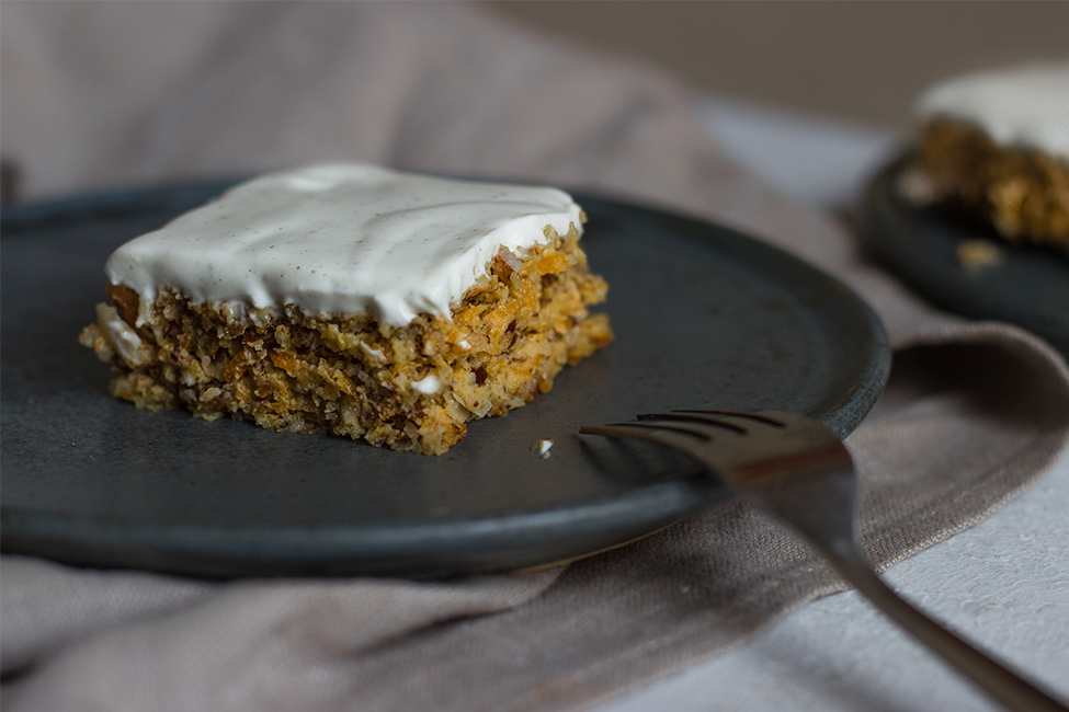 Gâteau aux carottes avec un glaçage au yaourt grec