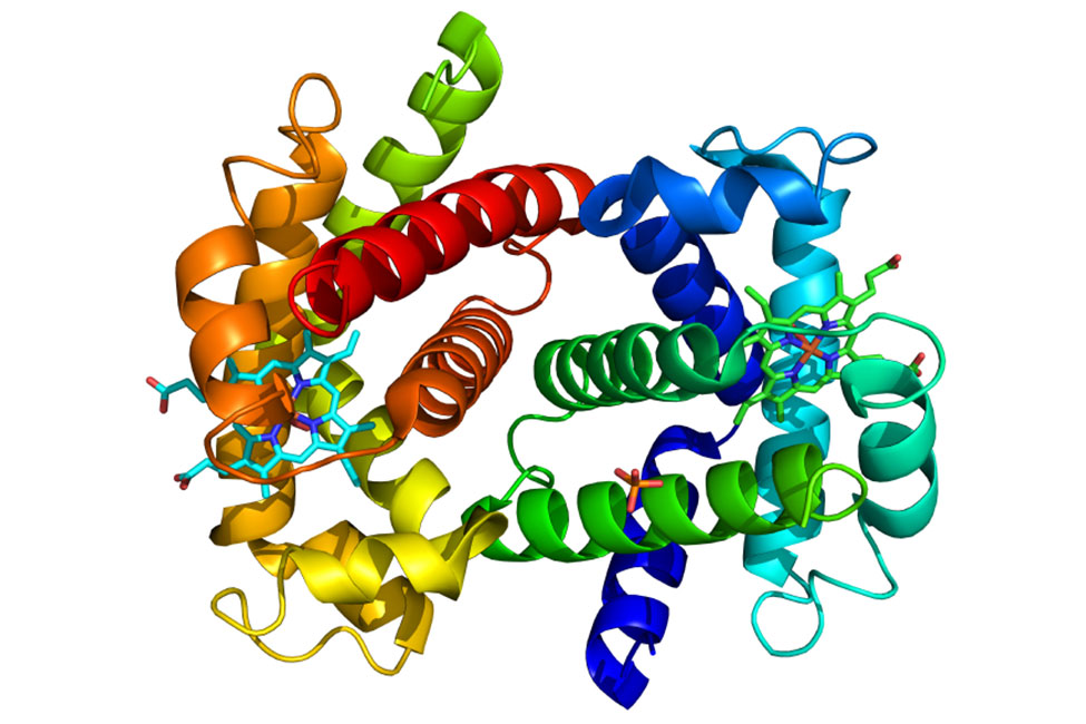 Pour remplir leur fonction, les chaînes d’acides aminés doivent tout d’abord former une structure spécifique. L’arrangement des acides aminés dans une séquence particulière n’est qu’une première étape. Imaginez un long ruban multicolore avec des rayures horizontales, qui tombe sur le sol, formant ainsi une boule enchevêtrée. La même chose se passe dans le cas des acides aminés s’ils veulent former une protéine fonctionnelle – sauf qu’ici rien ne se produit par hasard ; ils s’arrangent dans une forme en trois dimensions, comme une boule de ruban qui flotte dans l’air. Toutefois, à ce stade certaines protéines ne sont toujours pas fonctionnelles et doivent se combiner avec d’autres boules de ruban ou d’autres sections de ruban, à nouveau dans un arrangement prédéfini, pour pouvoir accomplir leurs tâches respectives. Ce processus est appelé le repliement des protéines.