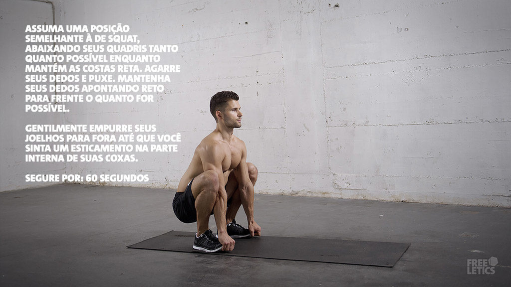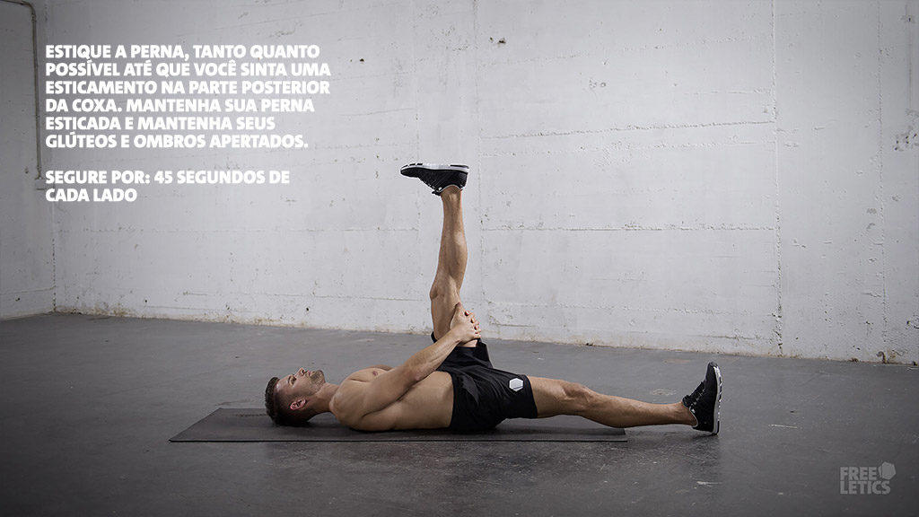 Para começar, o alongamento é uma parte mandatória do treino para qualquer atleta e deve ser levado tão a sério quanto o próprio treino. Imediatamente após o treino, você deve gastar alguns minutos para desacelerar lentamente. Quando se trata de esportes intensos como o Freeletics Bodyweight, é extremamente importante dar ao corpo alguns minutos para “desligar”. Senão você pode ter tonturas e náuseas pela queda brusca do seu batimento cardíaco e da sua pressão arterial. Em seguida, comece a sua rotina de alongamento para aliviar qualquer tensão muscular residual.