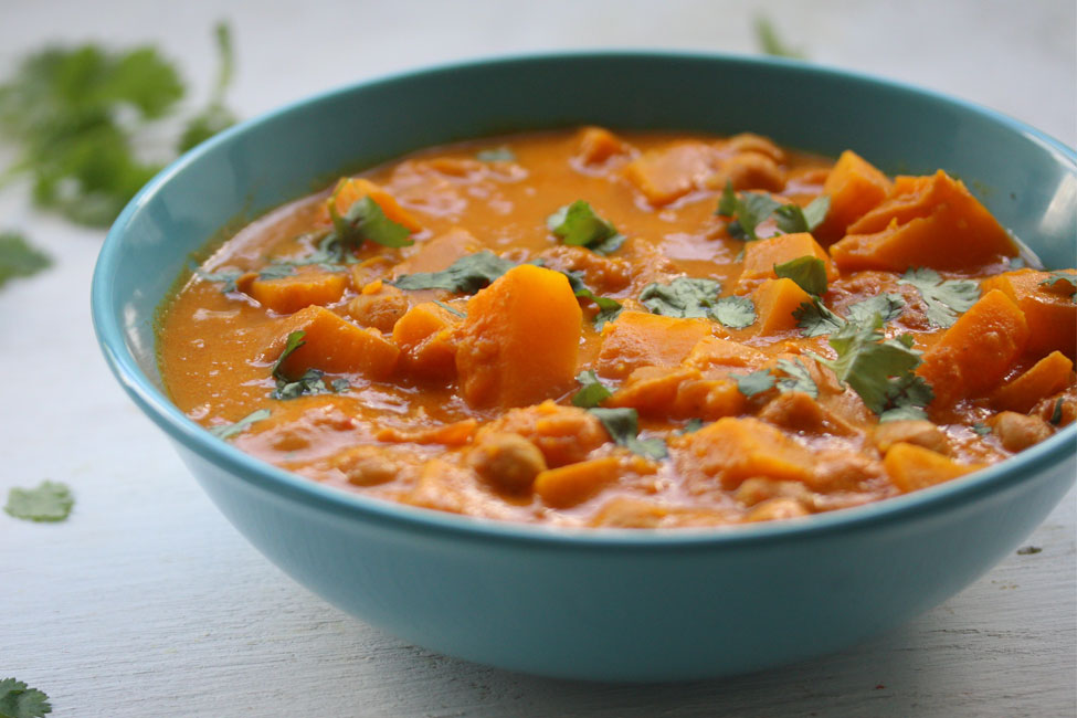 Por que é saudável? A abóbora tem poucas calorias e é rica em fibras, vitaminas e sais minerais. O leite de coco com baixo teor de gordura torna o curry tão cremoso quanto a versão integral, mas sem as calorias adicionais.