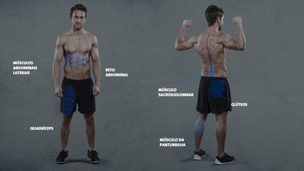 Os squats são conhecidos como exercícios para tonificar os glúteos. E com razão! Não existe quase nenhum outro exercício onde seus glúteos são tão solicitados. A força principal vem dos músculos das nádegas. Dependendo da versão do exercício que você escolher, a parte da frente ou de trás das coxas será mais tensionada. Específicamente, você usa o seu quadríceps, localizado na parte frontal da sua coxa, o músculo responsável pela flexão anterior de perna e os músculos associados do quadril, todos os três músculos glúteos e os músculos das panturrilhas. Mas você sabia que os squats também são ótimos para os seus músculos centrais, como os da região lombar das costas e também o abdômen? Os músculos extensores, tanto laterais quanto os centrais do abdômen, estabilizam o movimento e são trabalhados a cada squat. Isso é particularmente importante quando você considera que acoordenação, a estabilidade e a potência são transferidas para toda a musculatura a partir do centro do corpo.