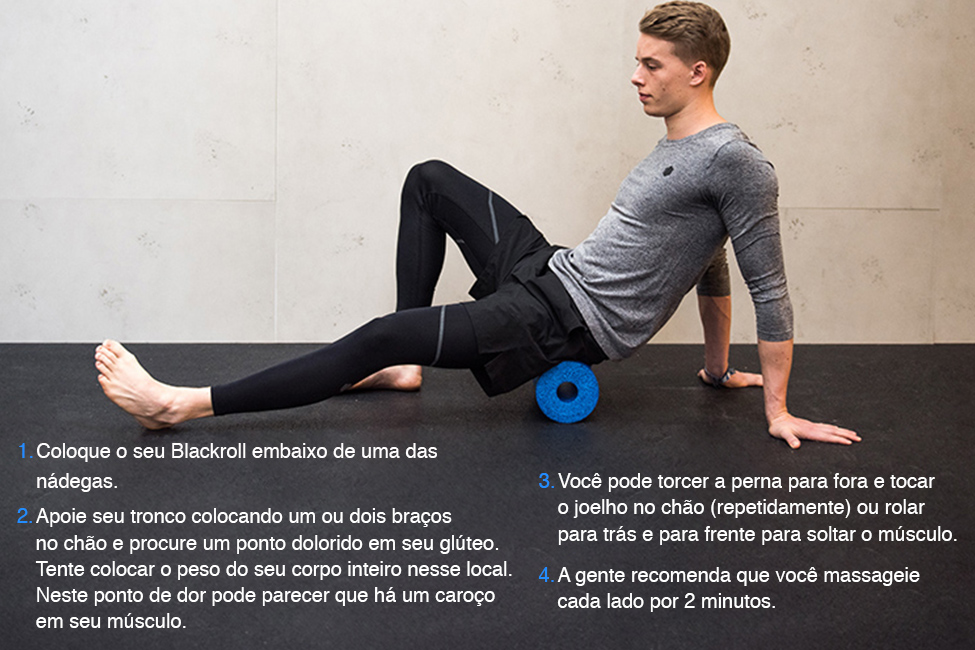 1. Usando um blackroll para deixar flexíveis os músculos dos seus glúteos